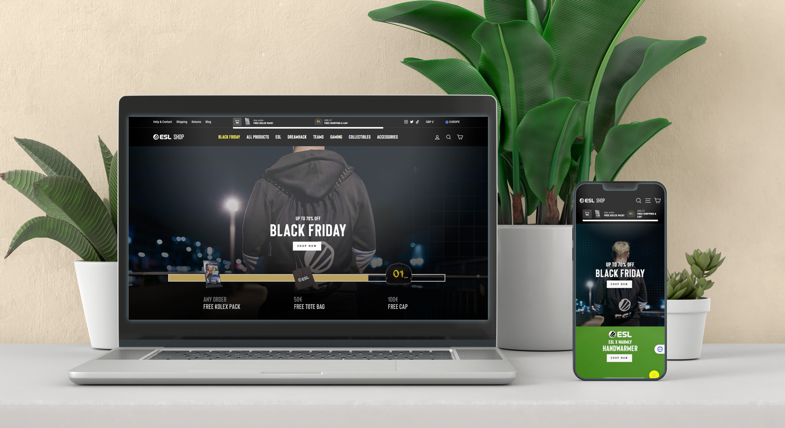 Kolex Trading Cards, formerly known as EPICS, have reinvented the concept of trading cards by integrating current technology to bridge physical and digital collections. They are primarily focused on esports players, teams, and streamers. ESL required a stand alone landing and product page creating for the ESL shop.