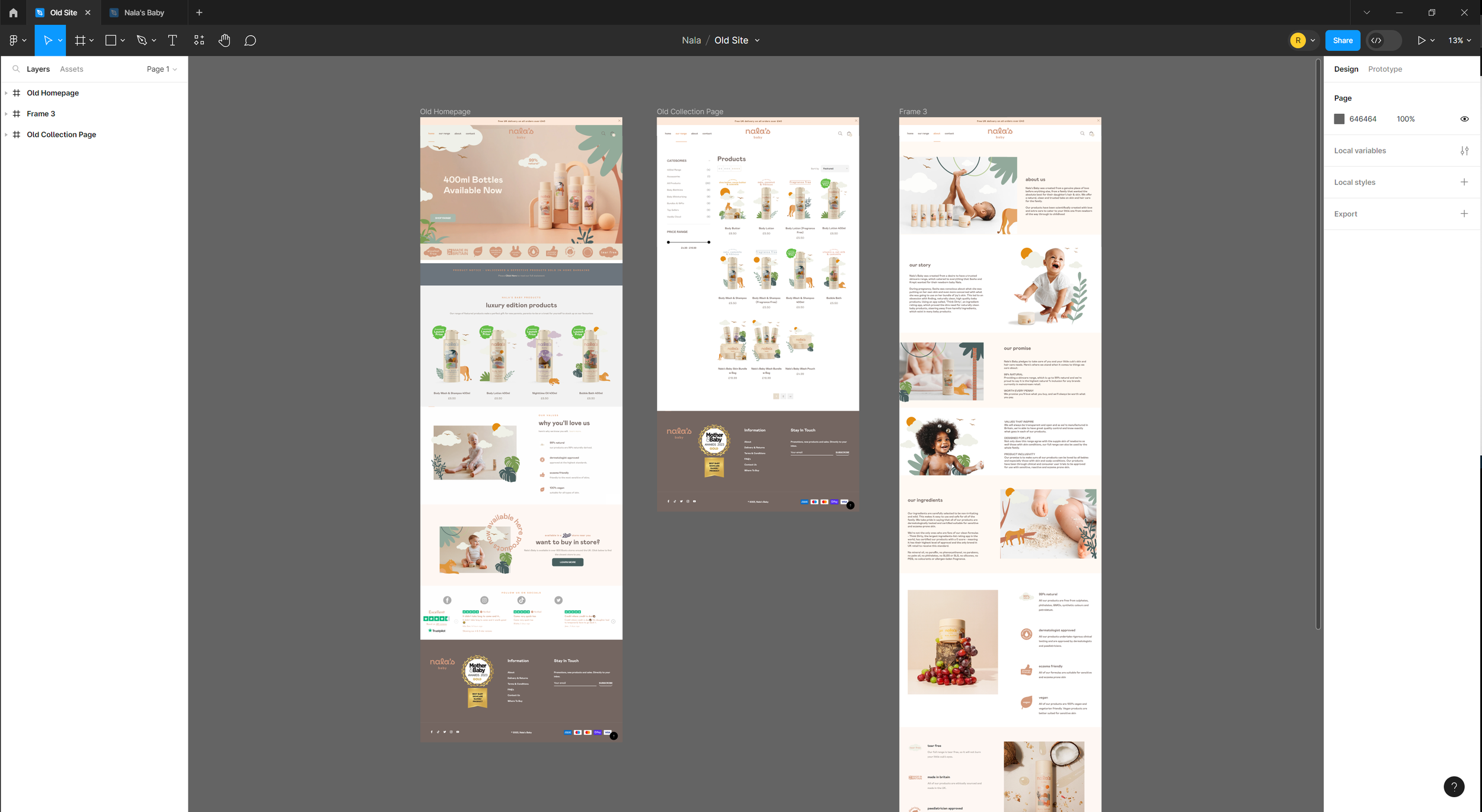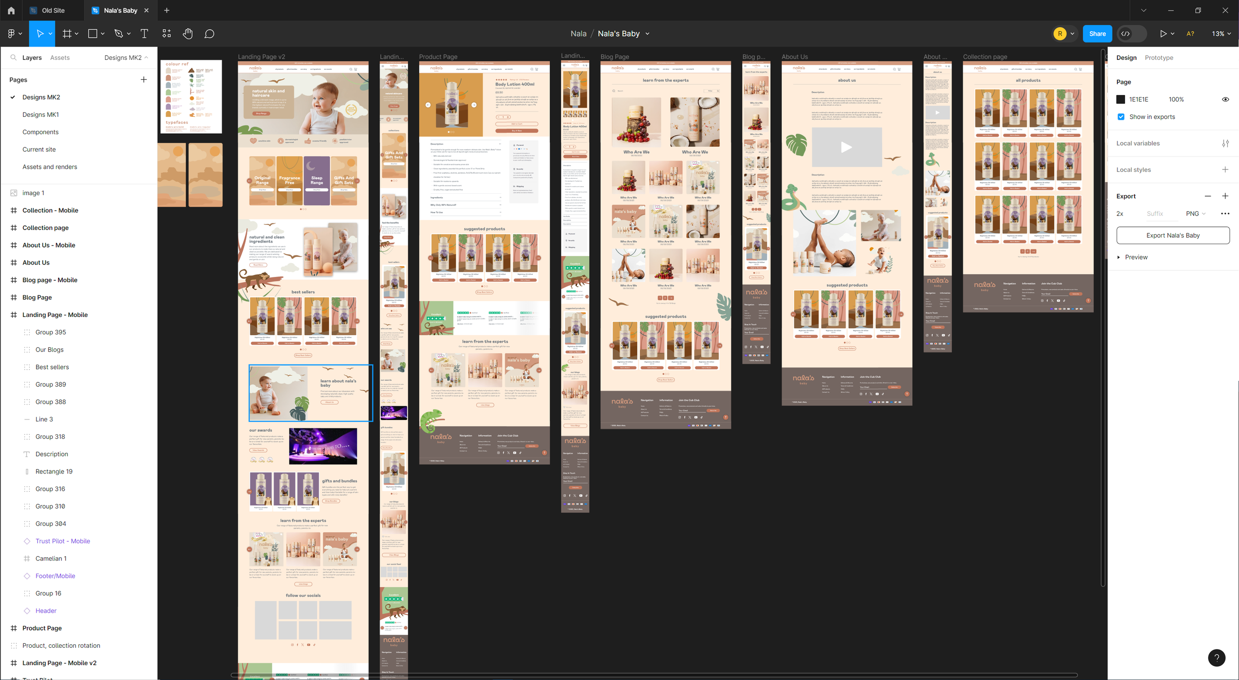 A Shopify theme had already be chosen by the client and I had to base designs within the constraints of what this theme allowed. Working this way has specific challenges as creativity has to be tempered so that the budget is adhered too. Some degree of customisation would be required though so I could do the Nala’s Baby brand justice, but a fine balance had to be met to ensure that the project did not become a full bespoke build, which was not budgeted for.